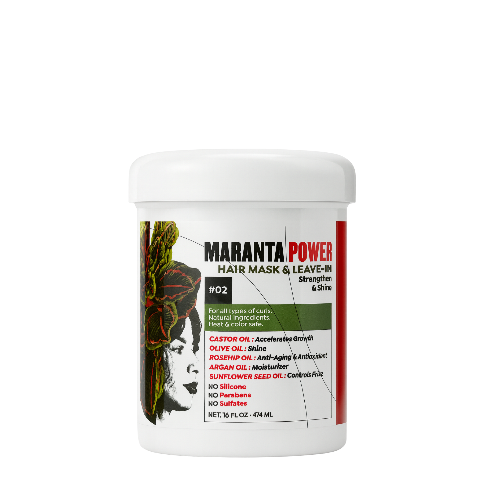 The Maranta Power Hair Mask is a 2-in-1 mask designed for curly and dry hair. It works as a deep treatment or a leave-in styling cream. It intensely nourishes with hemp oil, aloe vera, linseed, and rice protein. It repairs strands, improves elasticity, and leaves curls soft, defined, and frizz-free. Free of sulfates, silicones, and parabens. Ideal for curls in need of hydration, shine, and control.