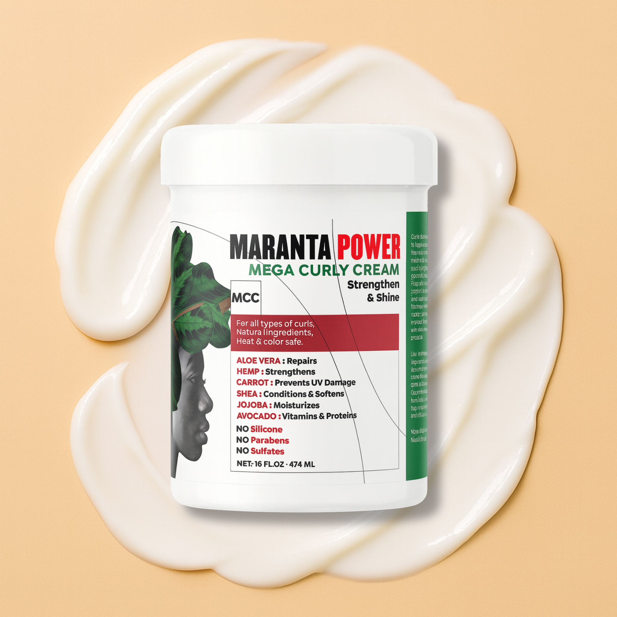Contains shea butter, castor oil, argan oil, coconut oil, aloe vera, and rice protein. This rich formula deeply nourishes, weightlessly defines, and controls frizz in denser or drier curls.